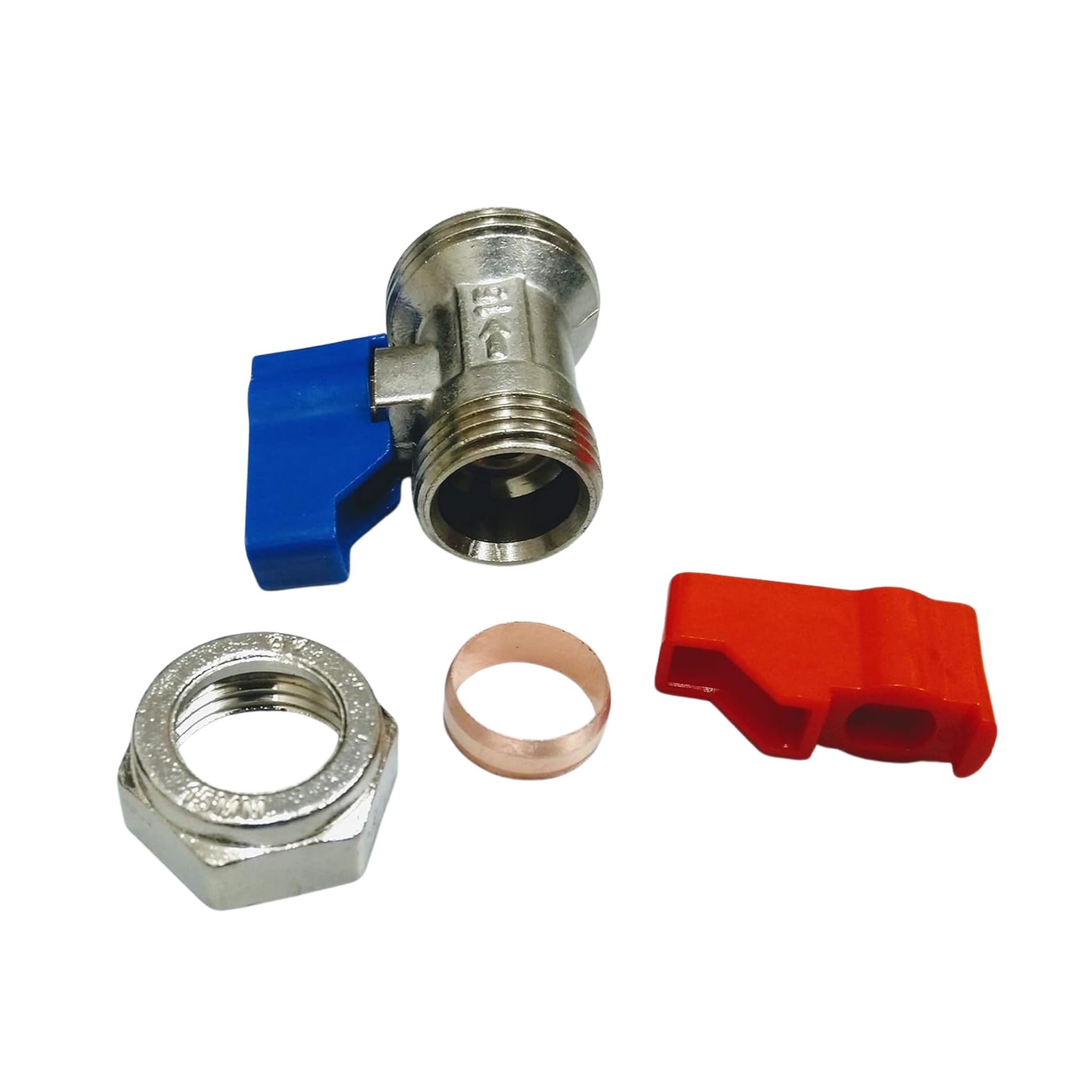 This premium chrome straight washing machine and dishwasher valve features a robust 15mm x 3/4 inch connection, perfect for reliable water control in your appliance installations. The durable metal construction ensures long-lasting performance, while the ergonomic blue and red handles offer smooth operation and clear hot/cold identification. The straight design provides straightforward installation and maintenance, making it ideal for both professional plumbers and DIY enthusiasts. The valve's precision engineering delivers consistent water flow control, whilst the secure threading prevents leaks. Compatible with standard UK plumbing systems, this valve is an essential component for connecting washing machines and dishwashers to your home's water supply. The quarter-turn operation provides quick shut-off capability when needed, and the compact profile helps maximise space efficiency in tight installation areas.