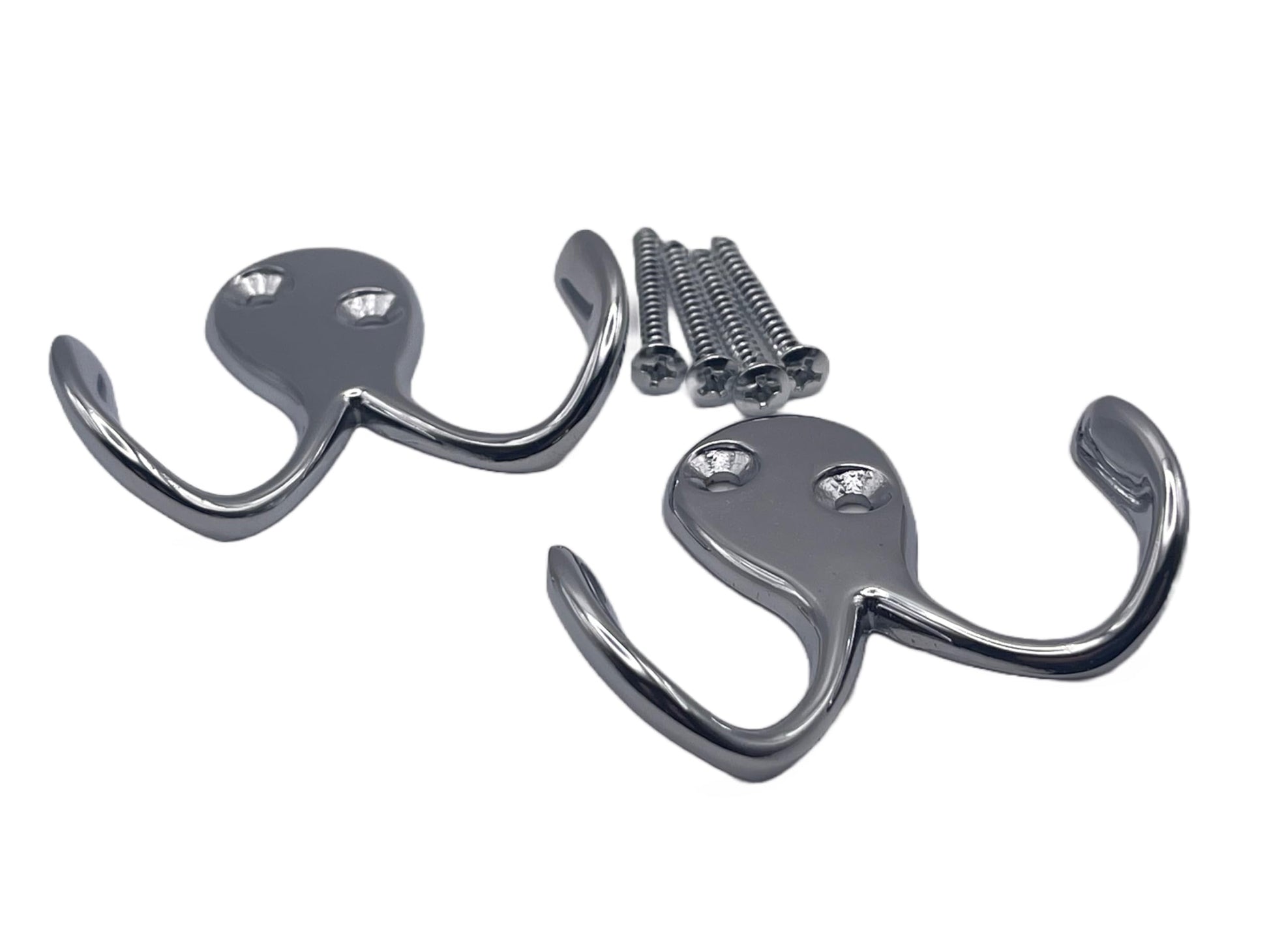 Aretro Chrome Two Pronged Coat Hooks Pack of 2 Double Prong Wall Mounted Decorative Clothes Hat Hooks Double Robe Hooks Screw in Door Hooks for Kitchen Bedroom Wall Bathroom Hanging with Screws