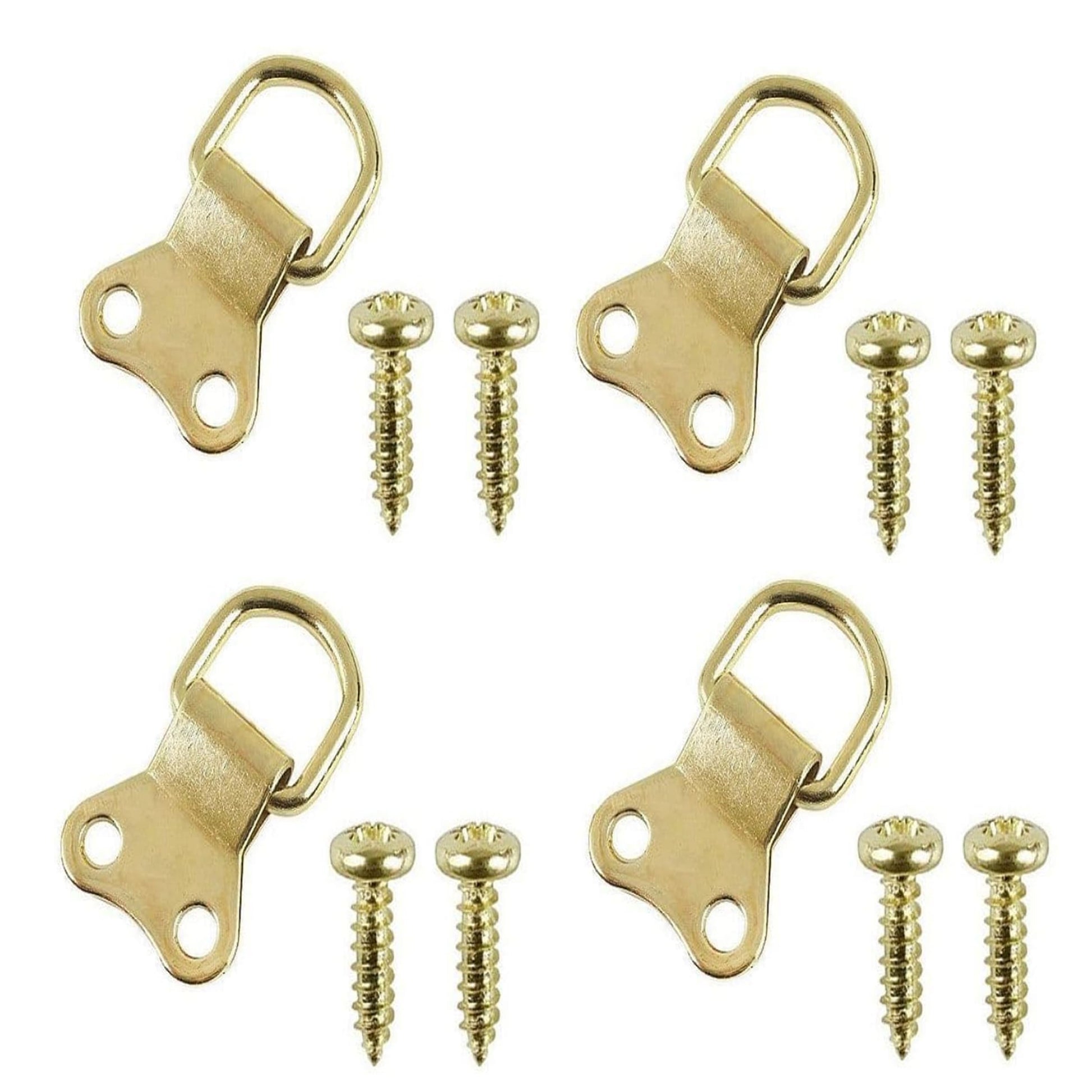 Aretro Large Brass Plated Picture D Rings & Plates Photo Frame Hanging Hooks Hangers Canvas Hook Wall Bracket Hanger with Screws (1 Pack of 4)
