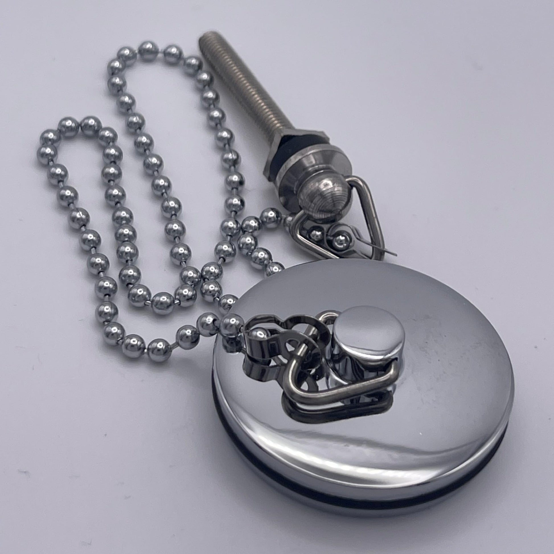 - Elevate your bathroom's style with this polished chrome bath plug stopper. Crafted from corrosion-resistant metal for longevity, it features an 12 inch (300mm) ball chain with connector for easy operation. Designed to complement modern or traditional bathroom suites, this plug sits firmly inside the drain hole, providing a watertight seal for efficient filling and draining of your bath. The included 1 1/2" (38mm) polished chrome basin plug drain stopper with ball chain stay is perfect for basins, toilets, and kitchen sinks. Upgrade your bathroom hardware with this sleek and functional plug stopper set.