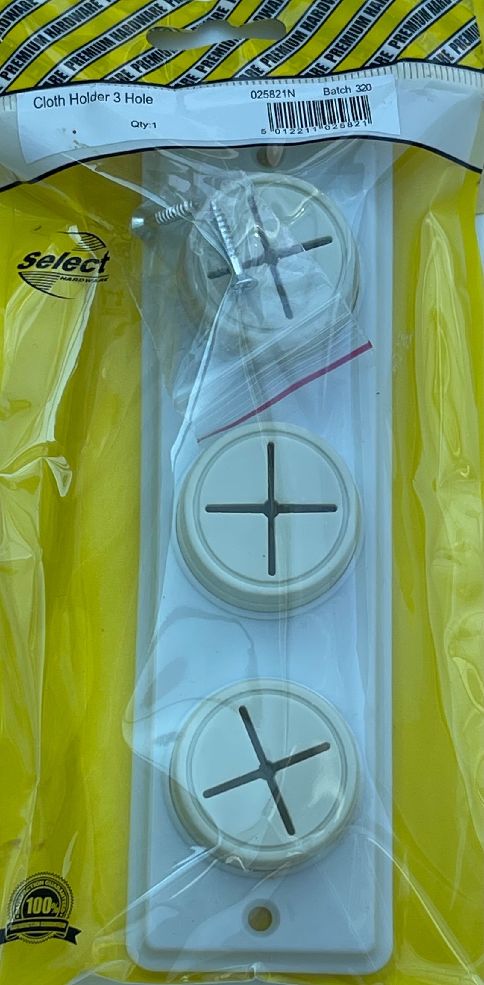 Treble Tea Towel Cloth Push in Holder Hook 3 Hole White 025821N